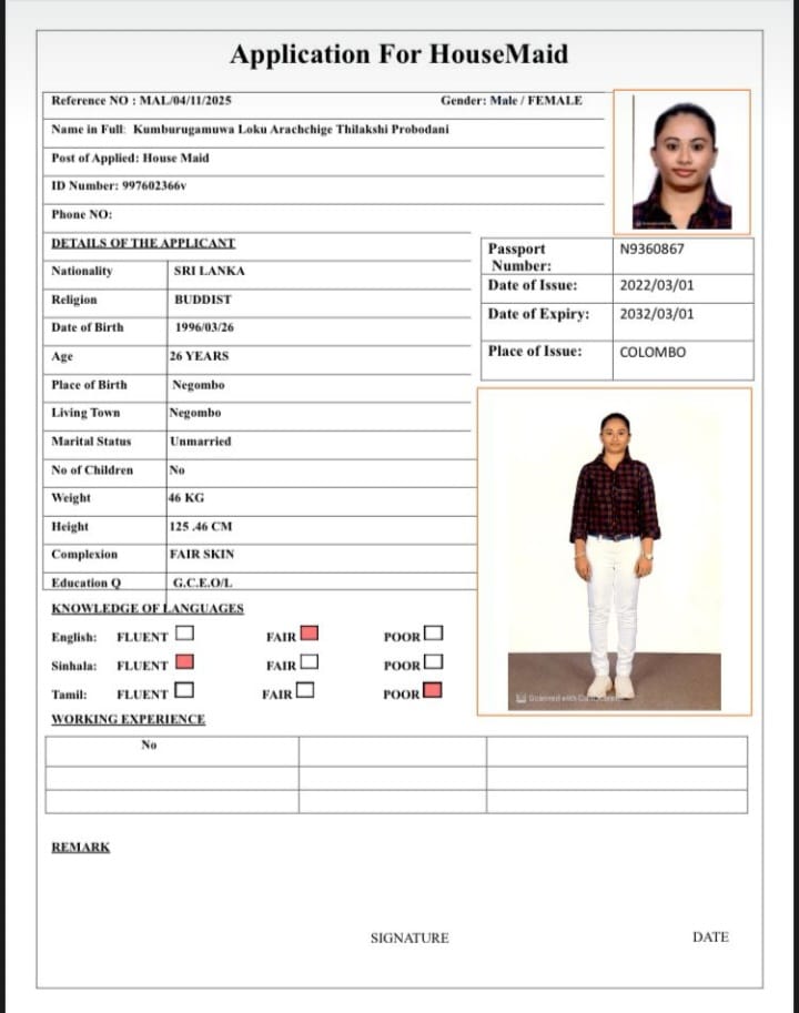 K L A THILAKSHI PRABODANI (Domestic Helper)